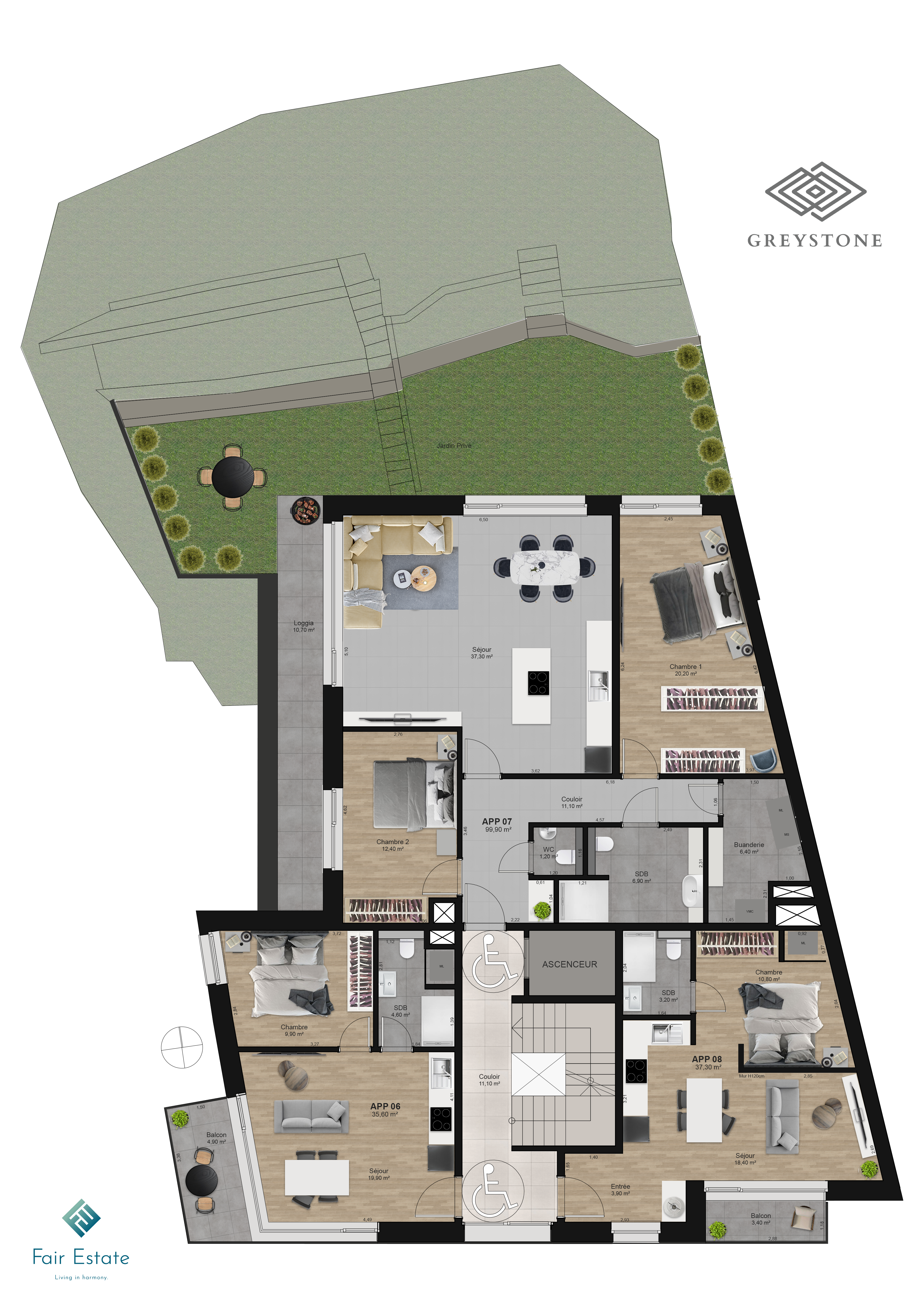 This new residence called ‘GREY STONE’ is a modern-style off-plan property (VEFA) with high-end amenities/finishes. It has an AAA+ energy rating and is located in the Neudorf district of Luxembourg City. The building has a contemporary and refined architecture, with a durable brick façade that blends into its surroundings. It consists of 9 units, ranging from studios to flats and penthouses. The flats benefit from good natural light, high-quality finishes and a balcony/terrace. This project is being carried out and developed by Fair Estate. Located in the north-east of Luxembourg City, the Neudorf/Weimershof district occupies a strategic location close to the Cents and Clausen districts, the Kirchberg business district and the city centre.